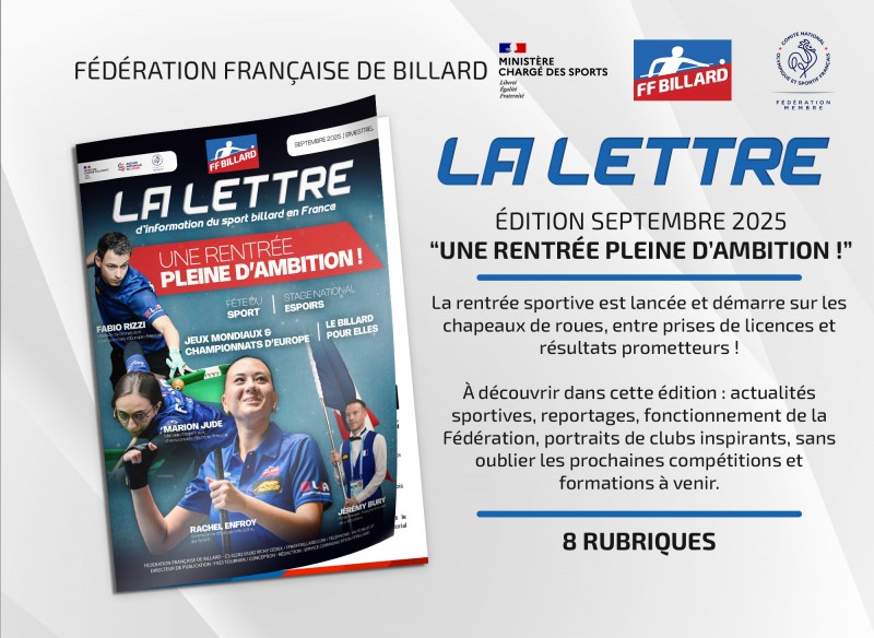 Une nouvelle édition de la lettre de la Fédération est disponible ! Ce numéro de septembre 2025 intitulé "Une rentrée pleine d'ambition !" revient sur la rentrée sportive qui a démarré sur les chapeaux de roues, entre prise de licence et résultats prometteurs !