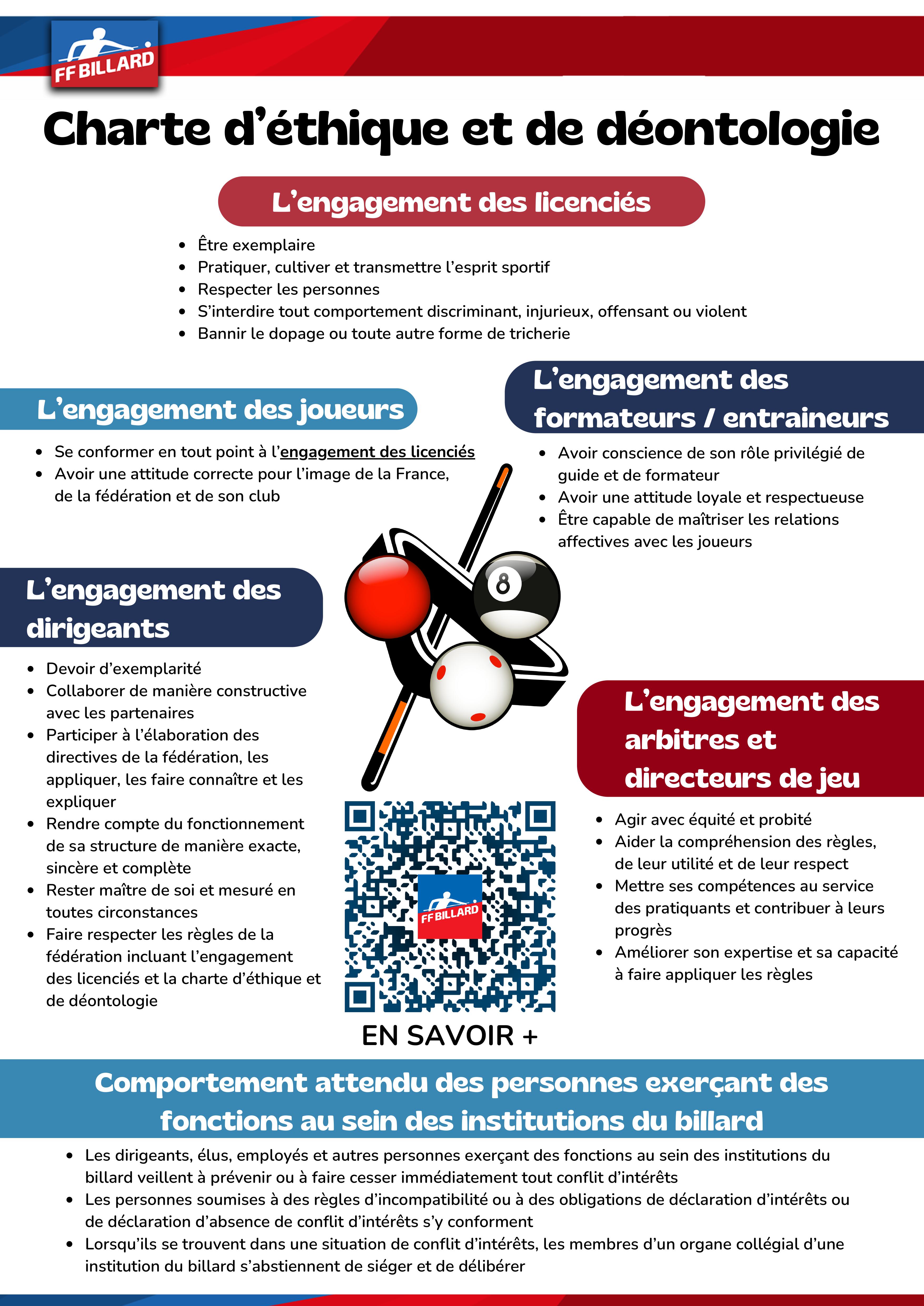 Aussi, veuillez prendre connaissance au préalable de la charte d’éthique et de déontologie de la FFB ci-dessus.